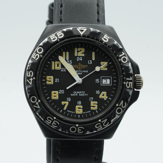 BREITLING COLT QUARRTZ MILITARY 80210 HERREN UHR STAHL SCHWARZ SCHÖN 37MM BR370