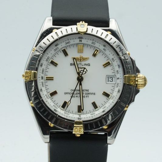 BREITLING CHRONOMAT 81950 HERREN UHR STAHL/GOLD WEISS SCHÖN BR466