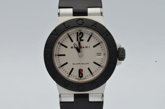 BULGARI ALUMINIUM QUARTZ DAMEN UHR 29MM AL29TA VINTAGE RAR 5 KAUTSCHUK BAND 4