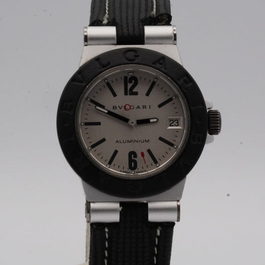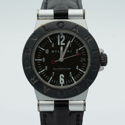 BULGARI ALUMINIUM QUARZ DAMEN UHR 32MM AL32TA VINTAGE RAR MIT LEDER BAND