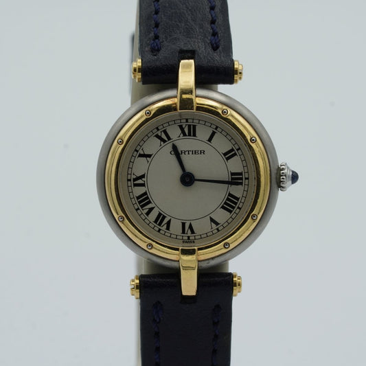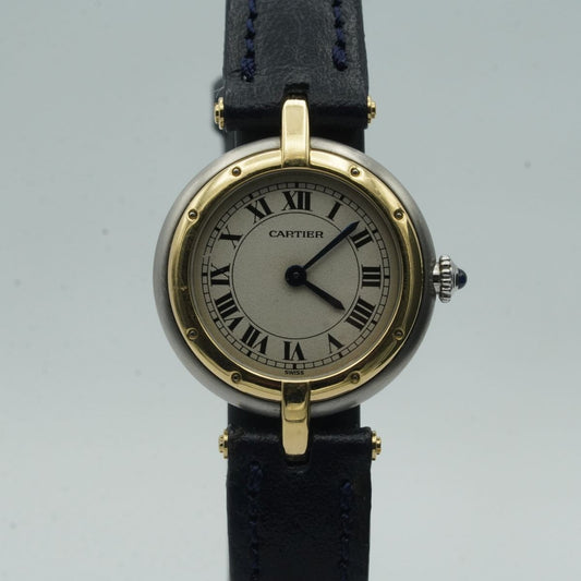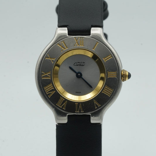 CARTIER LIGNE 21 DAMEN UHR 35MM STAHL/GOLD QUARZ VINTAGE LEDER BAND