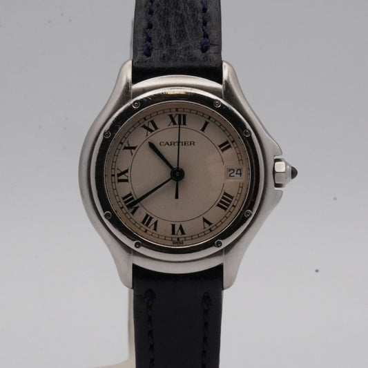 CARTIER LIGNE 21 DAMEN UHR 28MM STAHL/GOLD QUARZ VINTAGE LEDER BAND 1340 CA170