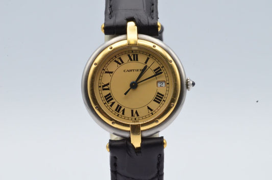 CARTIER PANTHERE RONDE 166920 STAHL/GOLD VINTAGE SCHÖNER ZUSTAND ARMBANDUHR 33MM