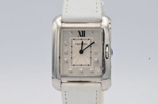 CARTIER TANK ANGLAISE QUARTZ DAMEN UHR 26MM STAHL 3704 VINTAGE MIT LEDER BAND