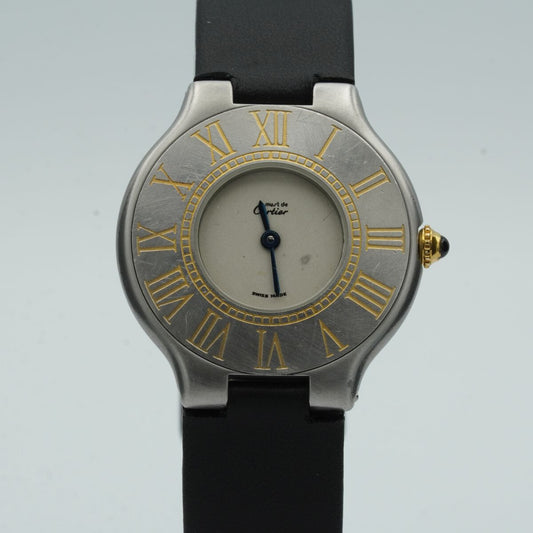CARTIER LIGNE 21 DAMEN UHR 28MM STAHL/GOLD QUARZ VINTAGE LEDER BAND CA066 PAPIER