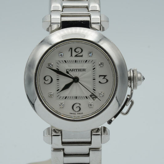 CARTIER PASHA AUTO DAMEN UHR 32MM 18K 750 GOLD 2398 WEISSGOLD FULL SET 135 GR.