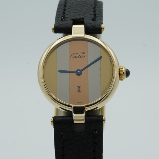 CARTIER VERMEIL 1800 SILBER VERGOLDET 26MM QUARZ DAMEN UHR VINTAGE 166691 CA036