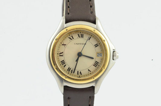 CARTIER SANTOS RONDE QUARTZ DAMEN UHR 33MM STAHL/GOLD VINTAGE MIT LEDER BAND 3