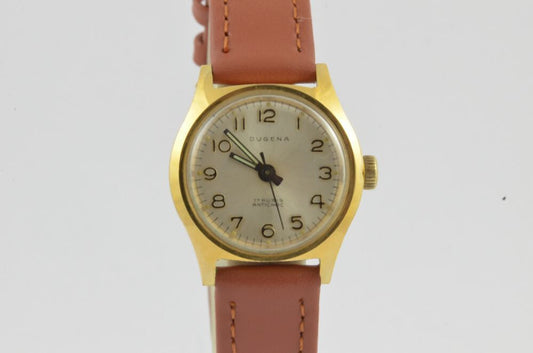 DUGENA DAMEN UHR STAHL VERGOLDET 20MM HANDAUFZUG VINTAGE RAR VINTAGE RAR