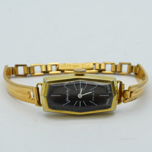 GLASHÜTTE DAMEN UHR STAHL VERGOLDET 12MM HANDAUFZUG VINTAGE TOP GL001