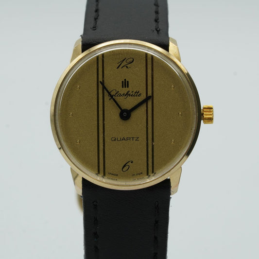 GLASHÜTTE DAMEN UHR STAHL VERGOLDET 26MM QUARTZ VINTAGE ARMBANDUHR VINTA GL015