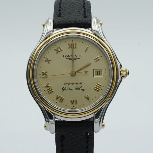 LONGINES GOLDEN WING DAMEN UHR QUARZ STAHL/GOLD 25MM RAR L3.106.5 L063 CREME