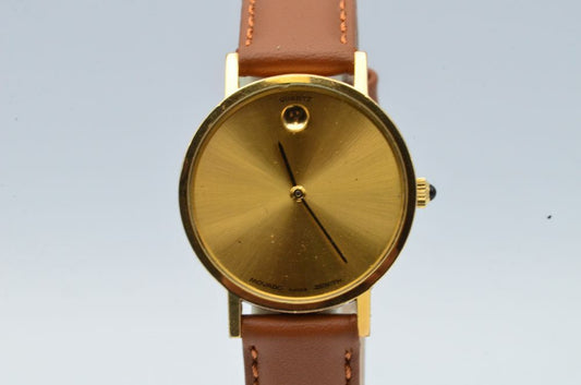 MOVADO DAMEN UHR 30MM STAHL MUSEUM WATCH TASCHENUHR 87-49-831 VERGOLDET QUARZ