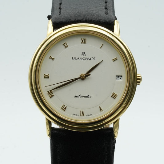 BLANPAIN VILLERET ULTRA SLIM HANDAUFZUG 34MM REF. 6595 STAHLGOLD TRIPLE CALENDAR