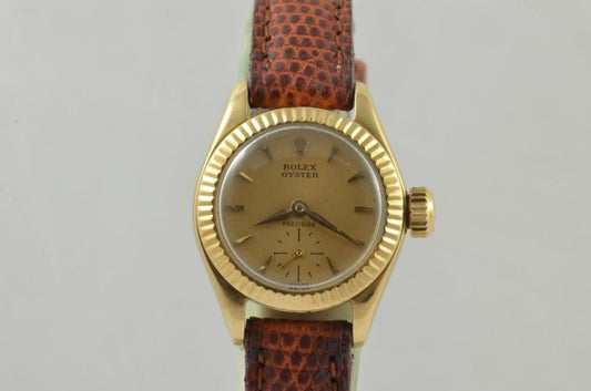 ROLEX OYSTER PRECISION DAMEN UHR 26MM 18K 750 GOLD VINTAGE HANDAUFZUG RAR