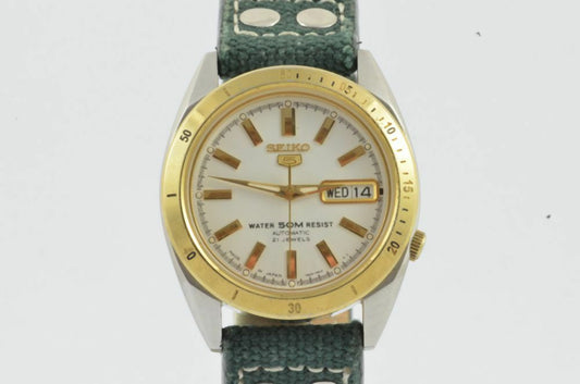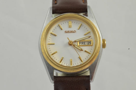 SEIKO QUARTZ HERREN UHR 35MM VINTAGE STAHL/GOLD 7N42-8209 ARMBANDUHR S006