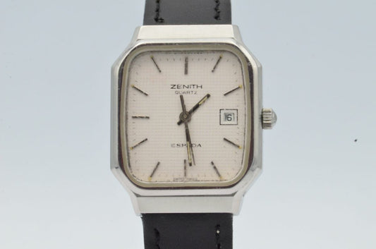 ZENITH ESPADA QUARZ DAMEN UHR 20MM STAHL VINTAGE MIT LEDER BAND RAR ARMBANDUHR