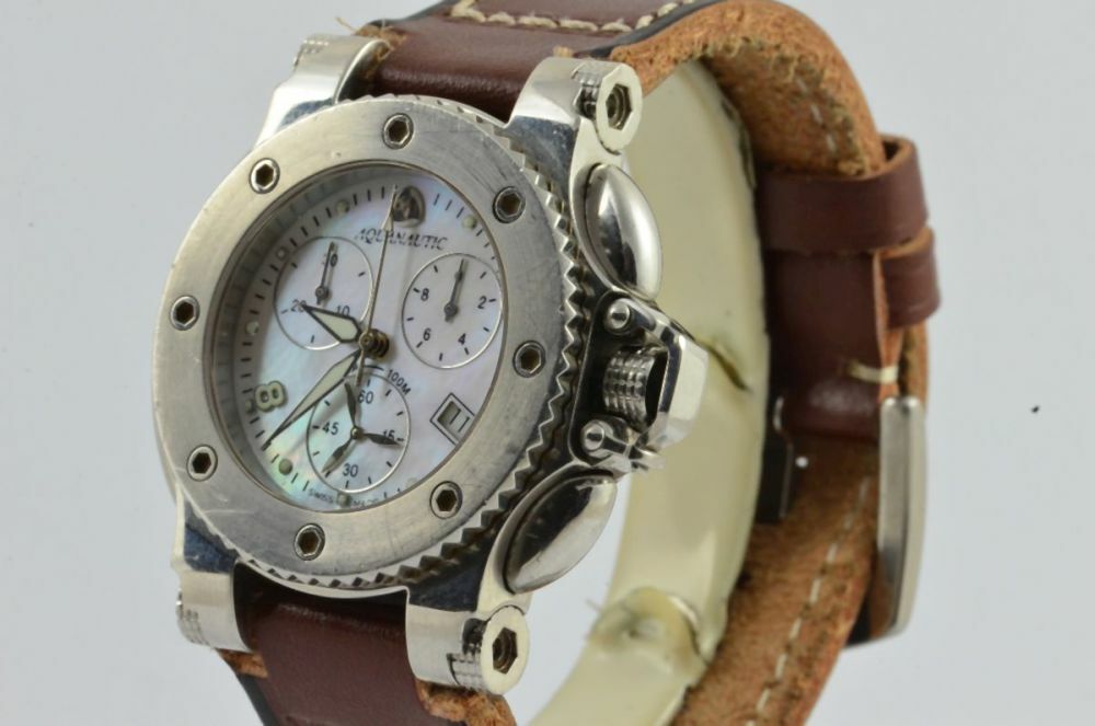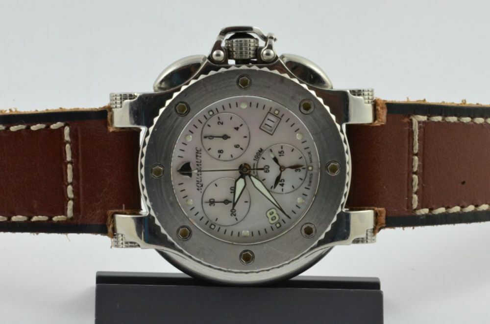 AQUANAUTIC QUARTZ CHRONO DAMEN UHR 32MM STAHL VINTAGE MOP PERLMUTT RAR N013