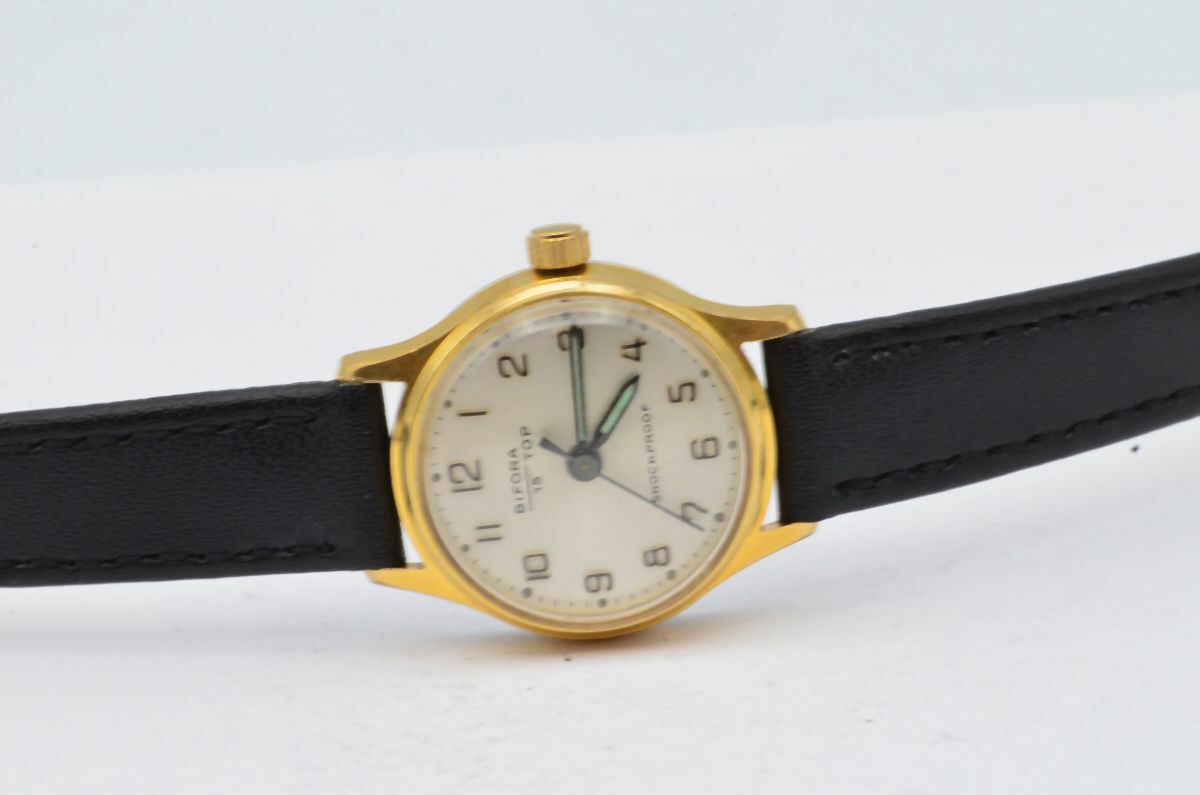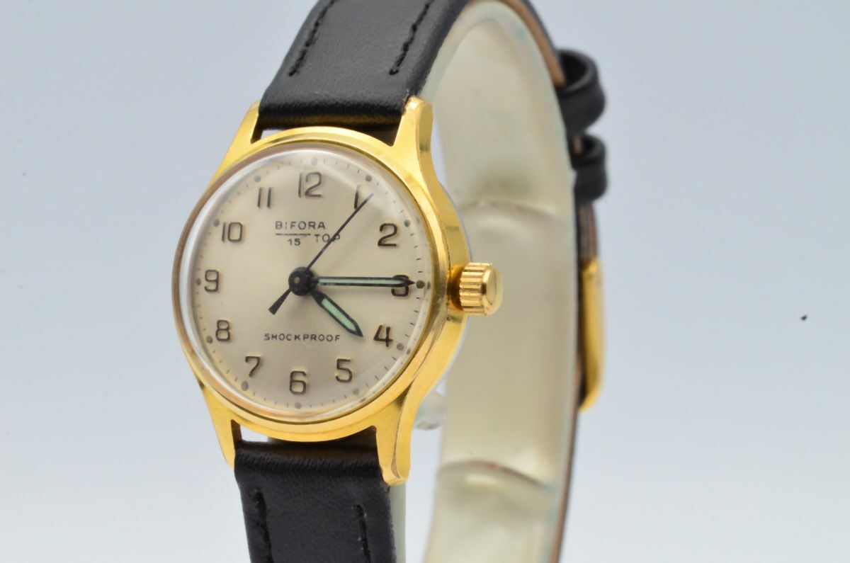 BIFORA HANDAUFZUG DAMEN UHR VINTAGE 26MM SCHÖNER ZUSTAND MIT LEDER BAND