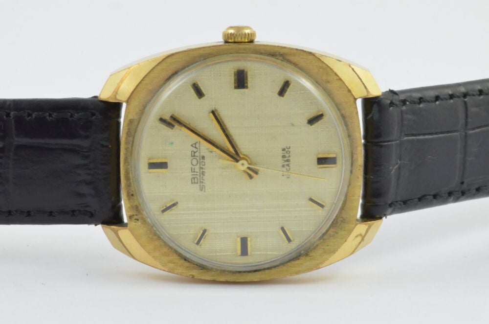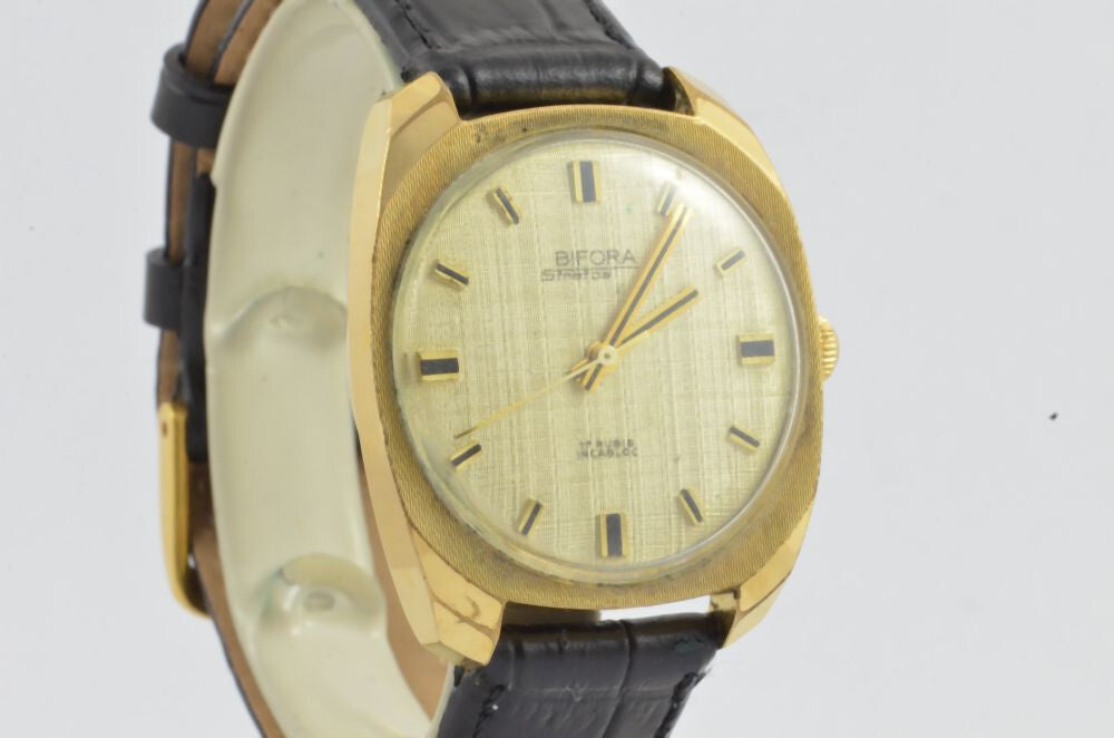 BIFORA STRATOS HANDAUFZUG HERREN UHR VINTAGE 34MM SCHÖNER ZUSTAND MIT LEDER BAND