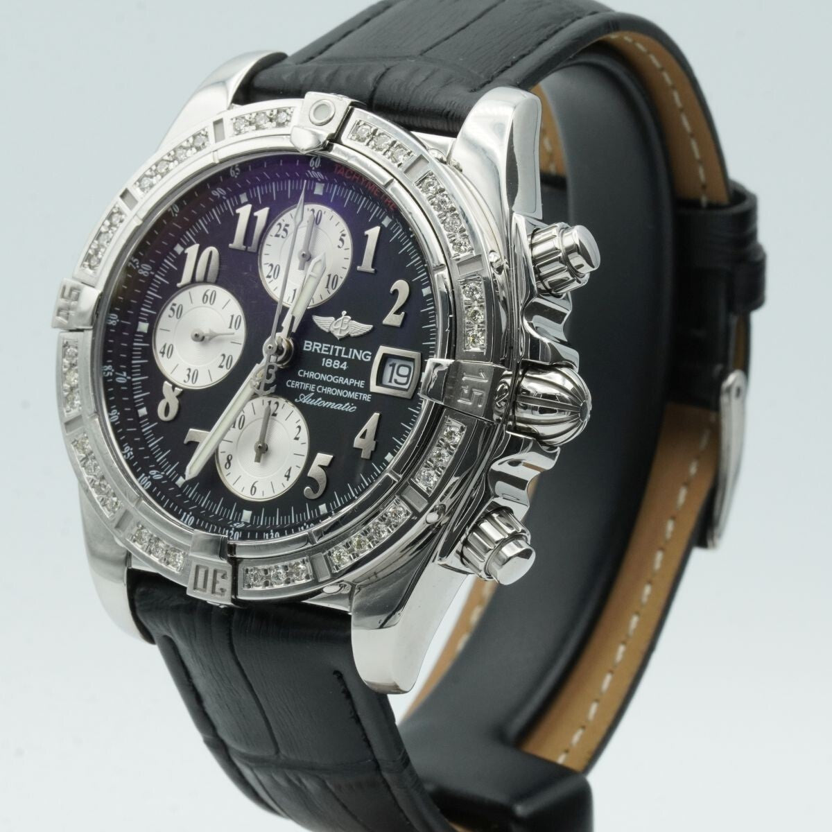 BREITLING CHRONOMAT EVOLUTION A13356 LÜNETTE SCHWARZ TOP ZUSTAND BRILLIANTEN