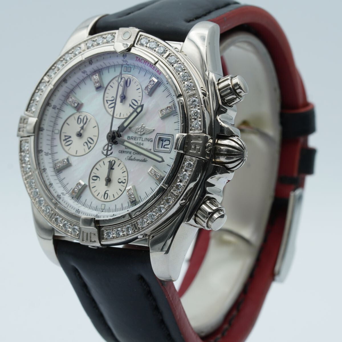BREITLING CHRONOMAT EVOLUTION J13356 18K GOLD WEISSGOLD BRILLIANTEN PERLMUTT