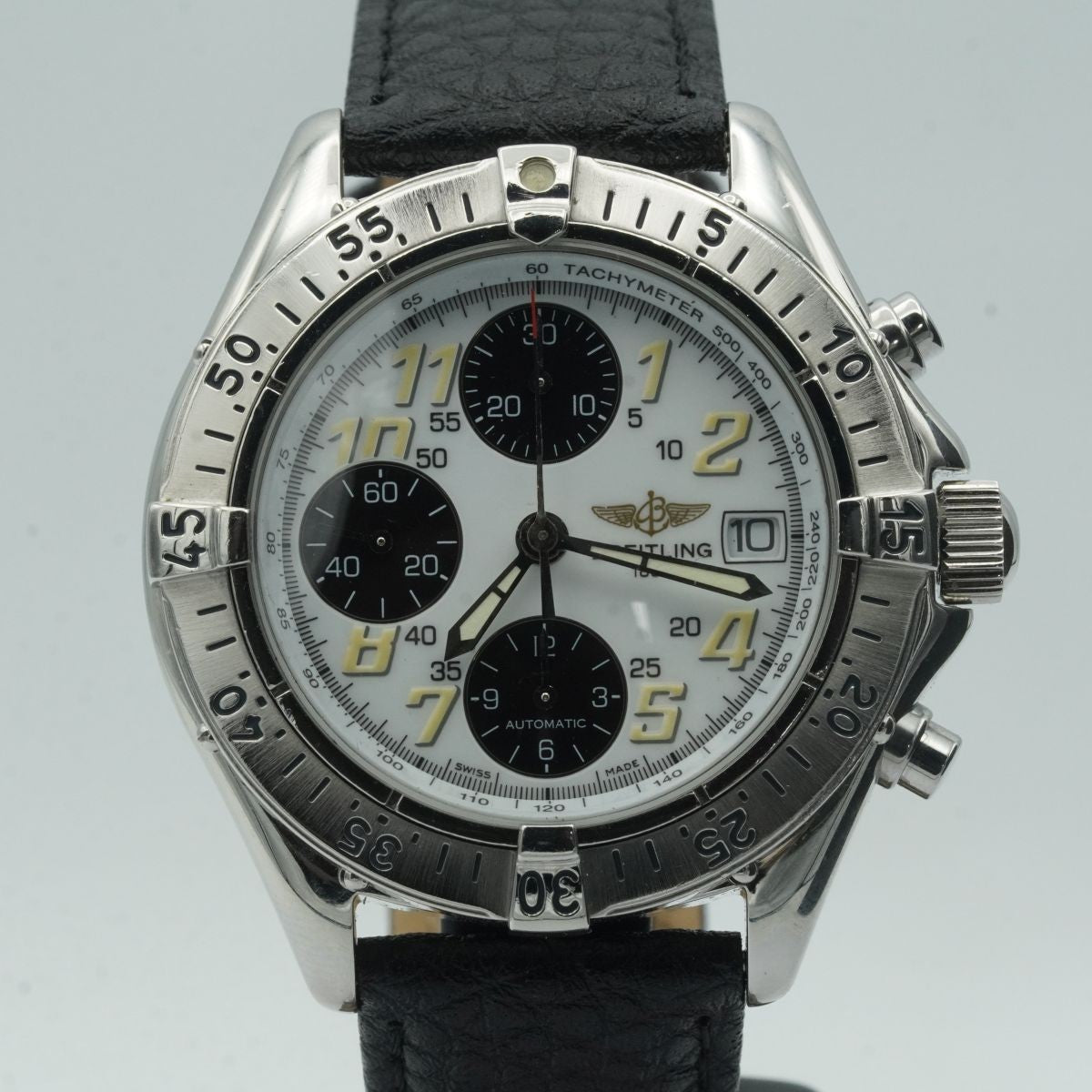 BREITLING COLT CHRONO HERREN UHR A13035 STAHL 40MM AUTOMATIK WEISS BR553