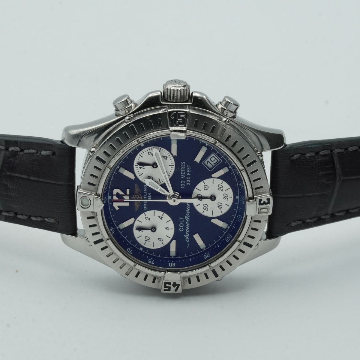 BREITLING COLT CHRONO HERREN UHR A53050 STAHL 38MM SCHÖN WEISS BR529 BLAU