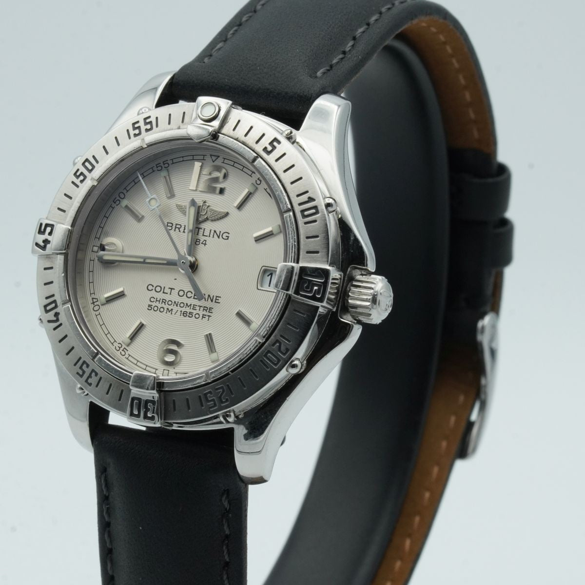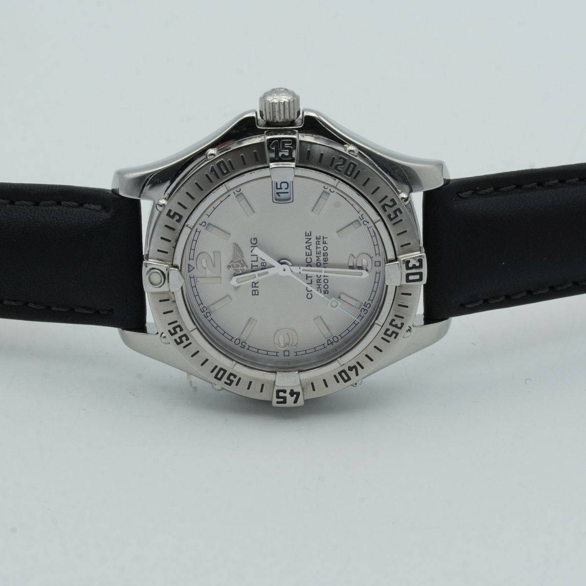 BREITLING COLT OCEANE DAMEN UHR A77380 32MM STAHL MIT LEDER BAND SCHÖN BR522