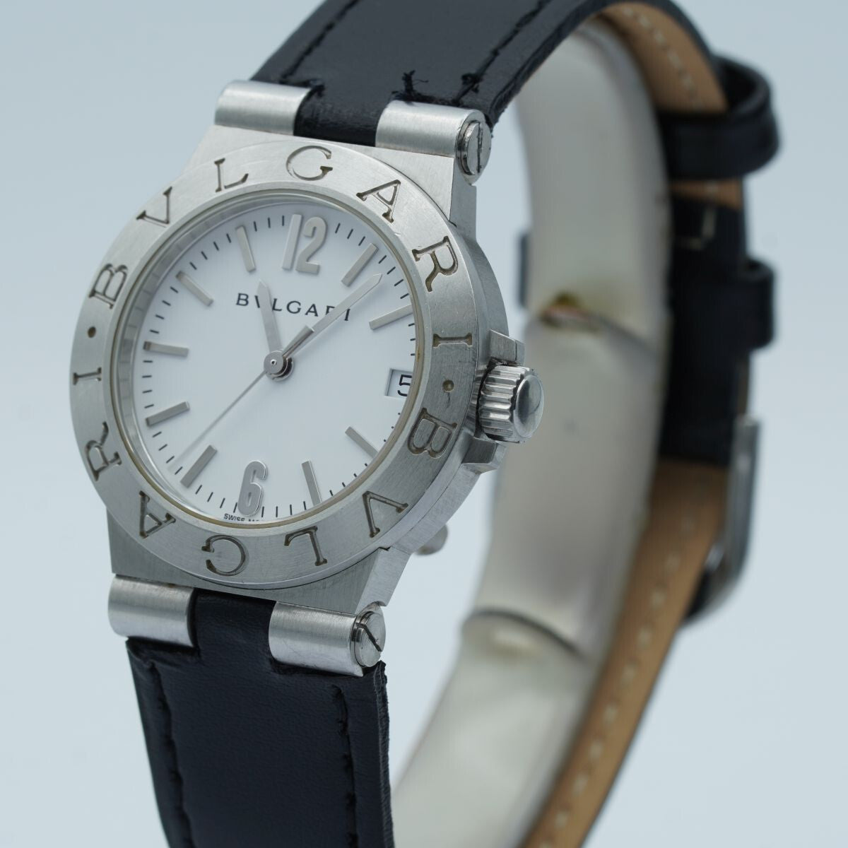BULGARI DIAGONO DAMEN UHR 29MM STAHL LCV29S WEISS SCHÖNER ZUSTAND QUARTZ