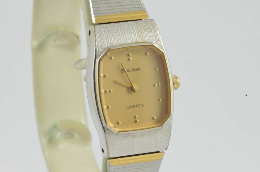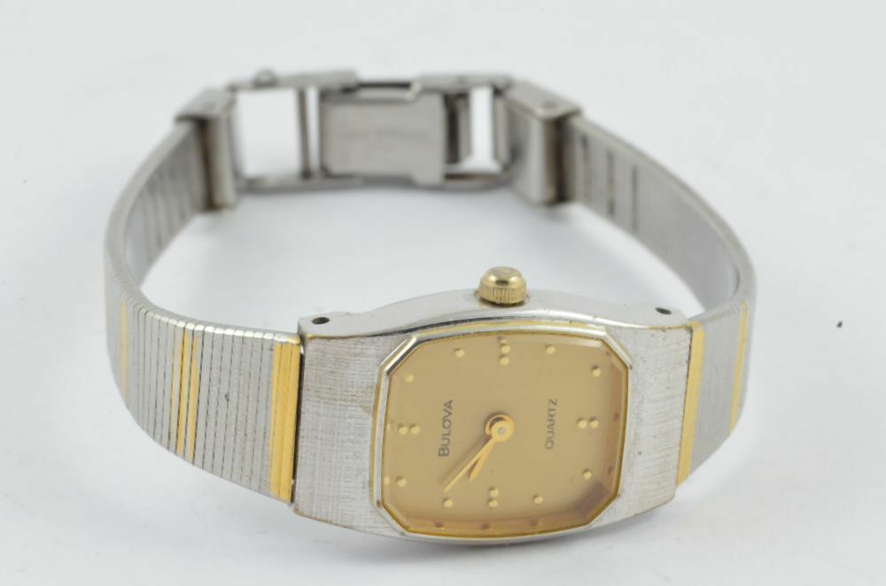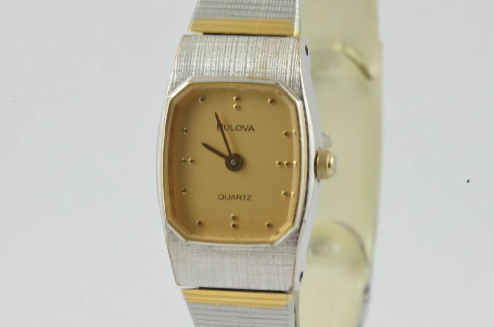 BULOVA QUARZ DAMEN UHR 25MM STAHL BLAU SCHÖNER ZUSTAND ARMBANDUHR VINTAGE RAR
