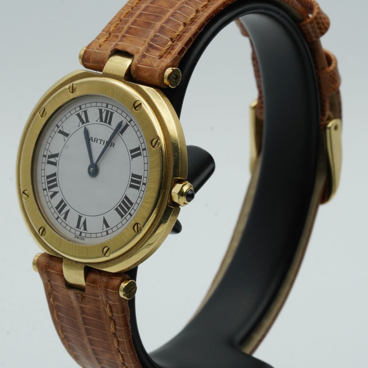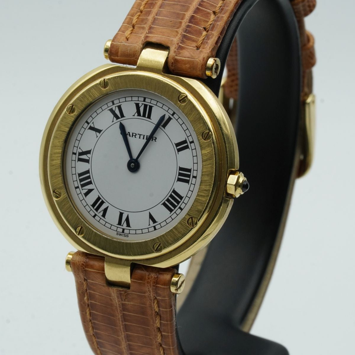 CARTIER SANTOS RONDE QUARTZ DAMEN UHR 33MM 18K 750 GOLD MIT TOP ZUSTAND