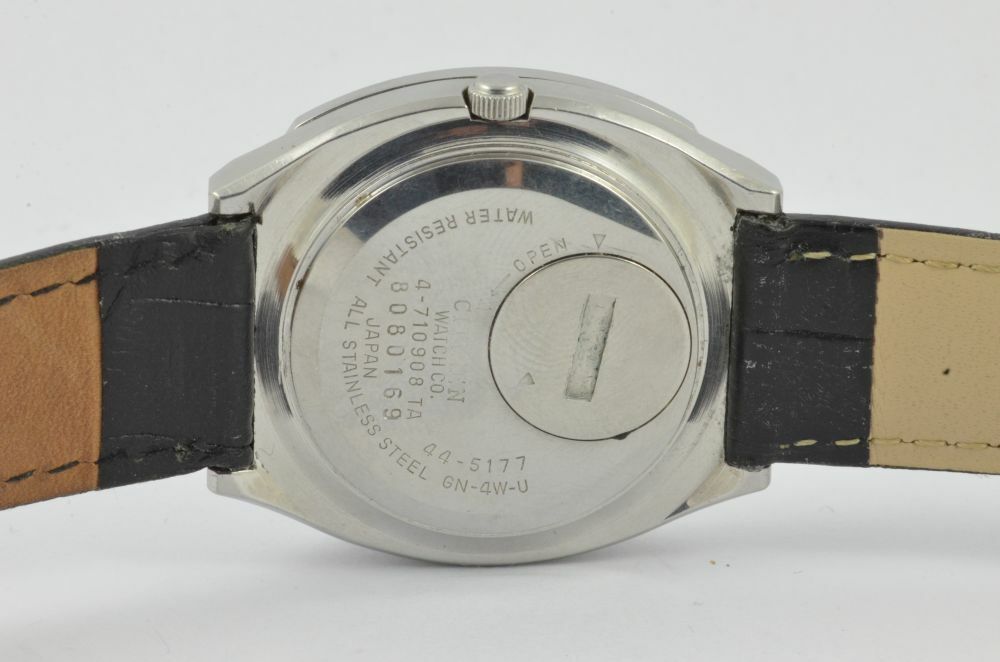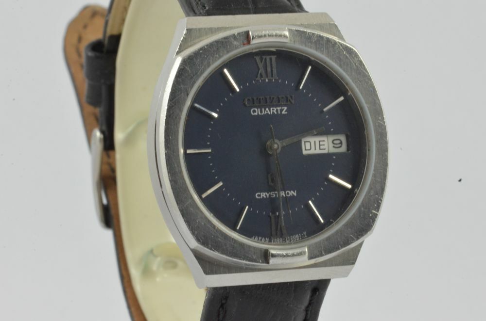CITIZEN CRYSTRON QUARTZ VINTAGE HERREN UHR 34MM STAHL MIT LEDER BAND GN-4W-U