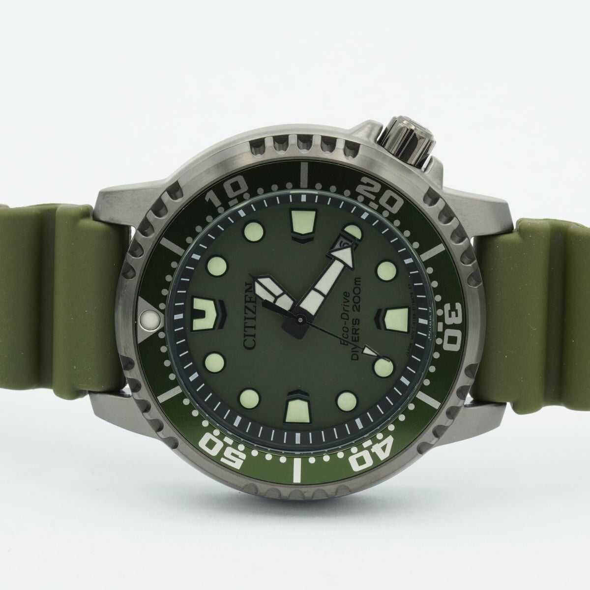 CITIZEN ECO-DRIVE DIVER QUARZ HERREN UHR 42MM VINTAGE GRÜN + PAPIERE TITAN