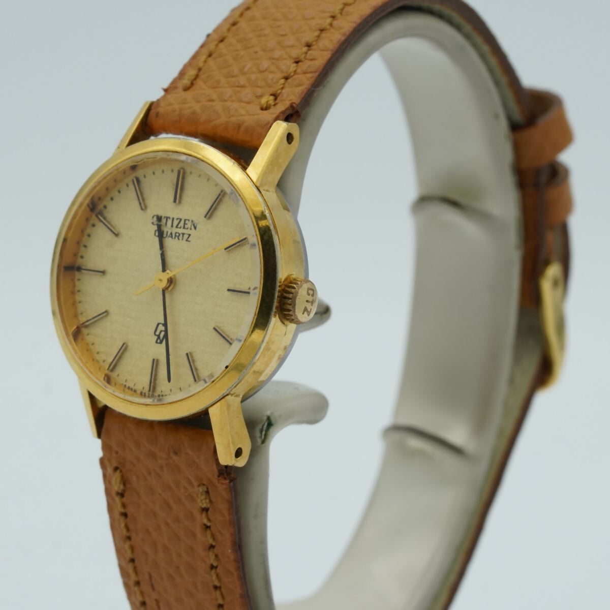 CITIZEN QUARTZ DAMEN UHR 25MM STAHL/GOLD QUARTZ VINTAGE RAR 8 LEDER BAND CI013