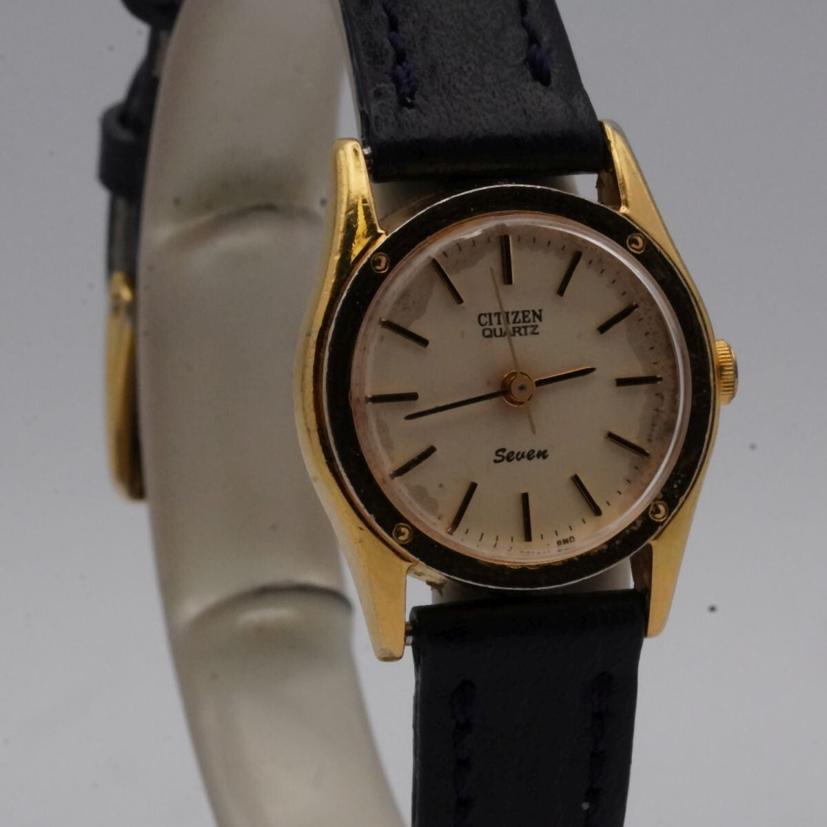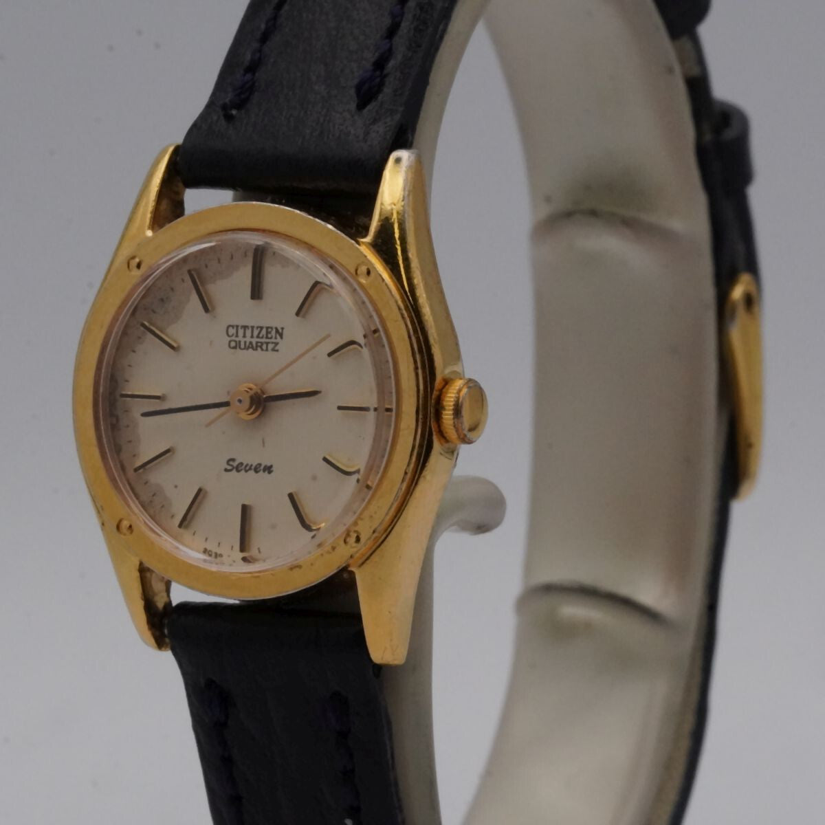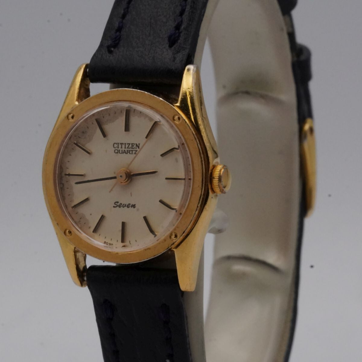 CITIZEN QUARTZ DAMEN UHR 25MM STAHL/GOLD QUARTZ VINTAGE RAR 8 MIT LEDER BAND