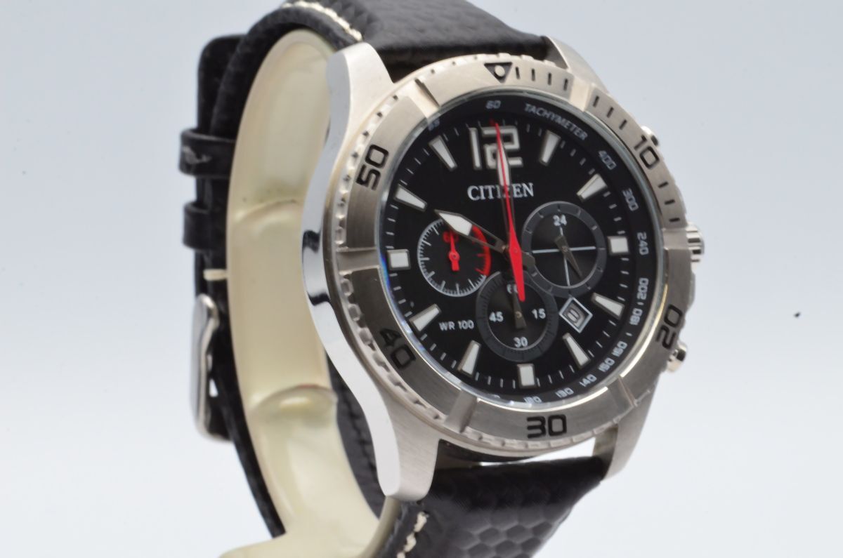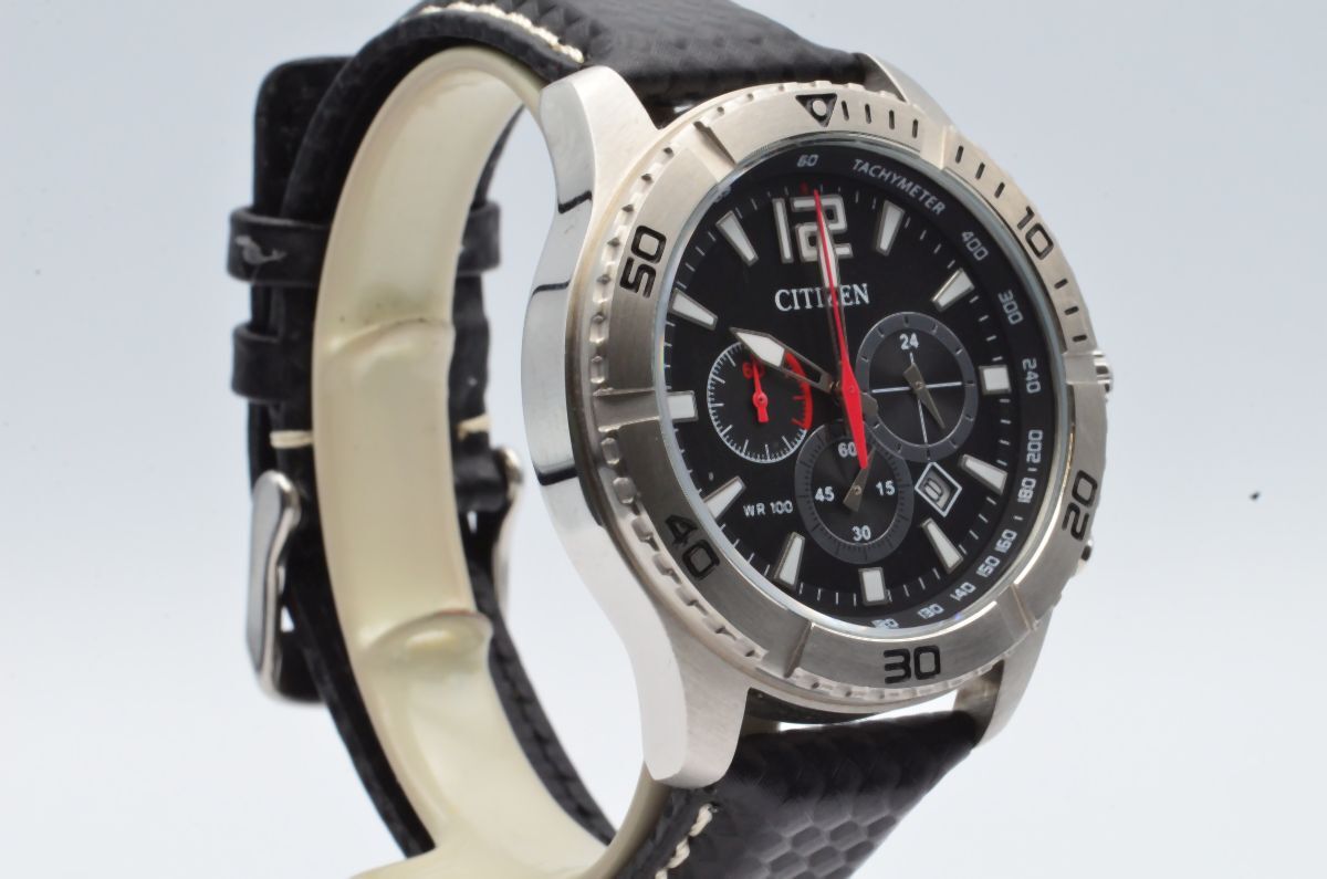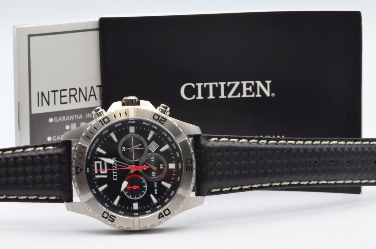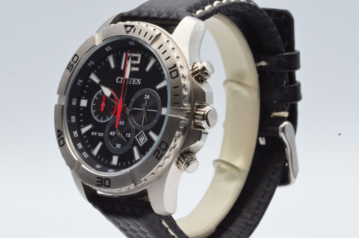 CITIZEN WR 100 QUARZ CHRONO HERREN UHR 42MM VINTAGE BLAU CHRONO MIT LEDER BAND
