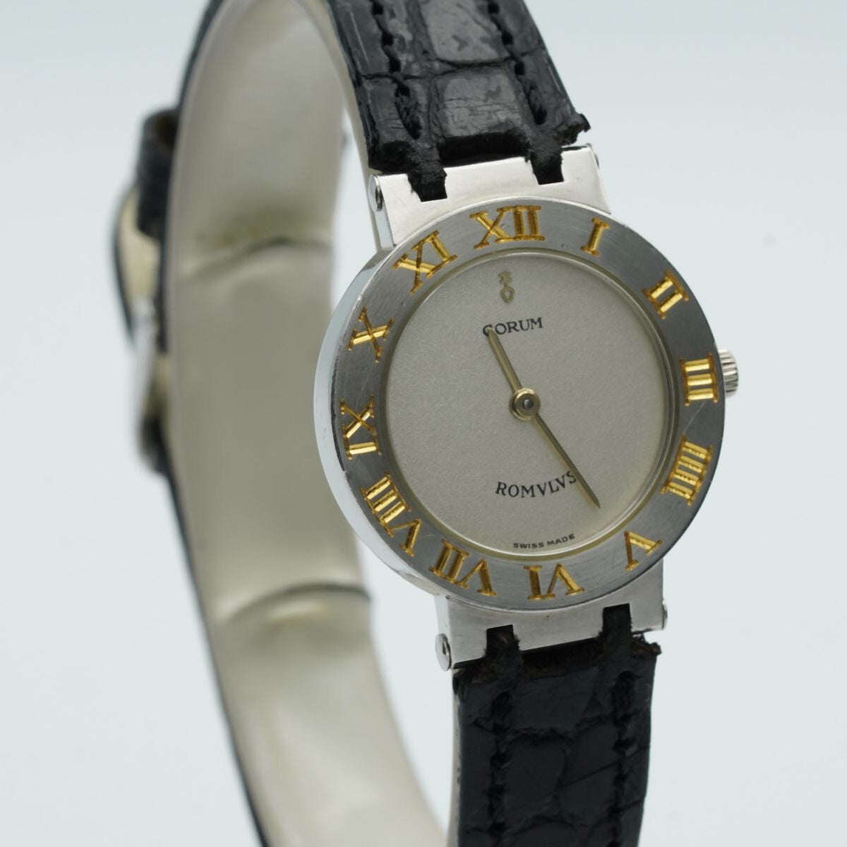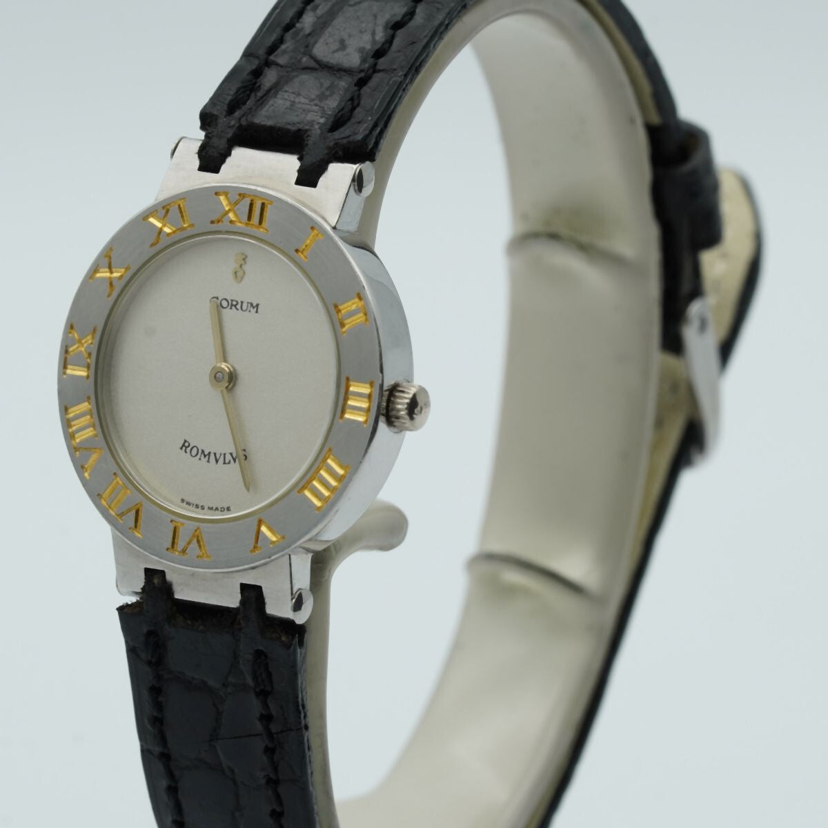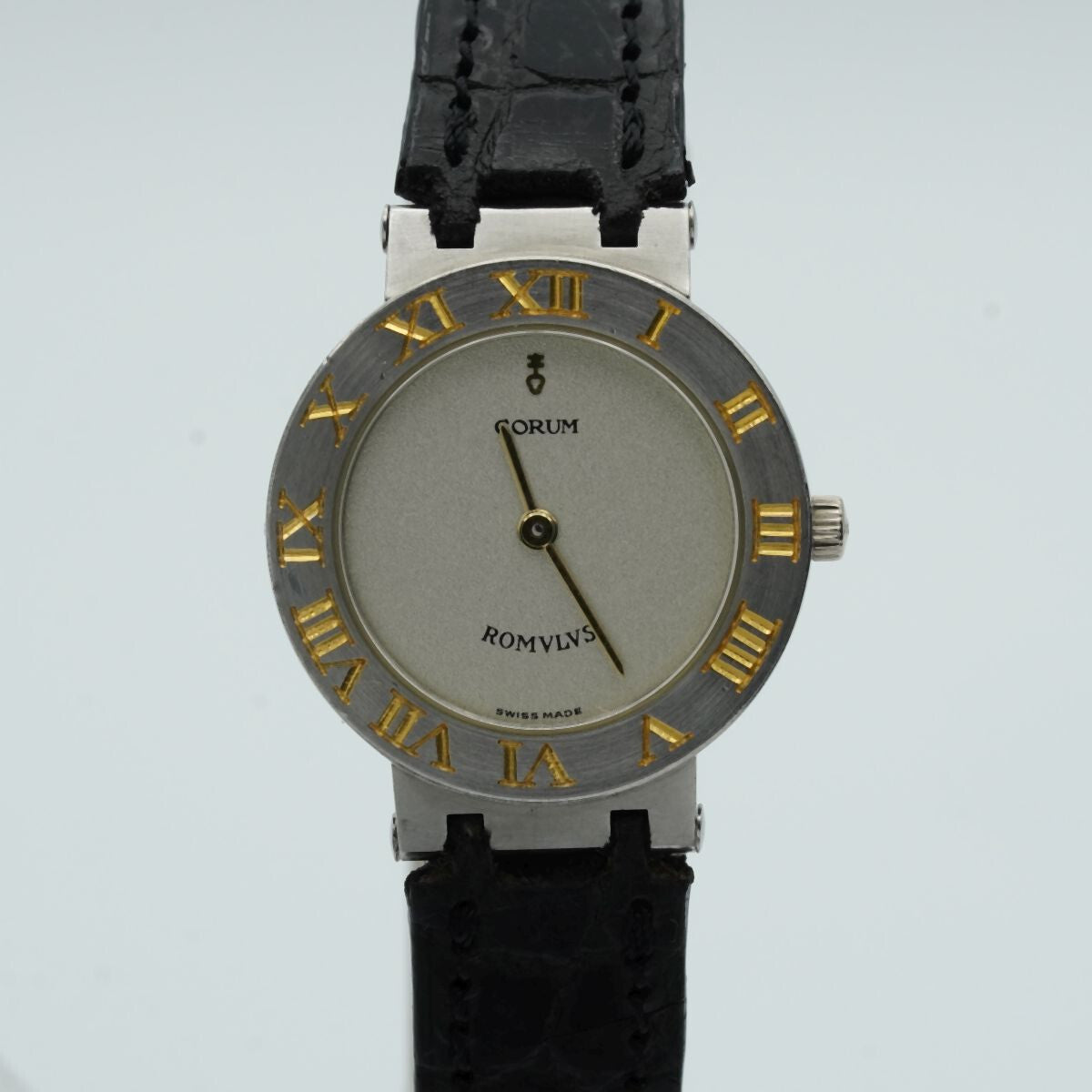 CORUM ROMULUS DAMEN UHR QUARZ 26MM STAHL/GOLD MIT LEDER BAND ARMBANDUHR