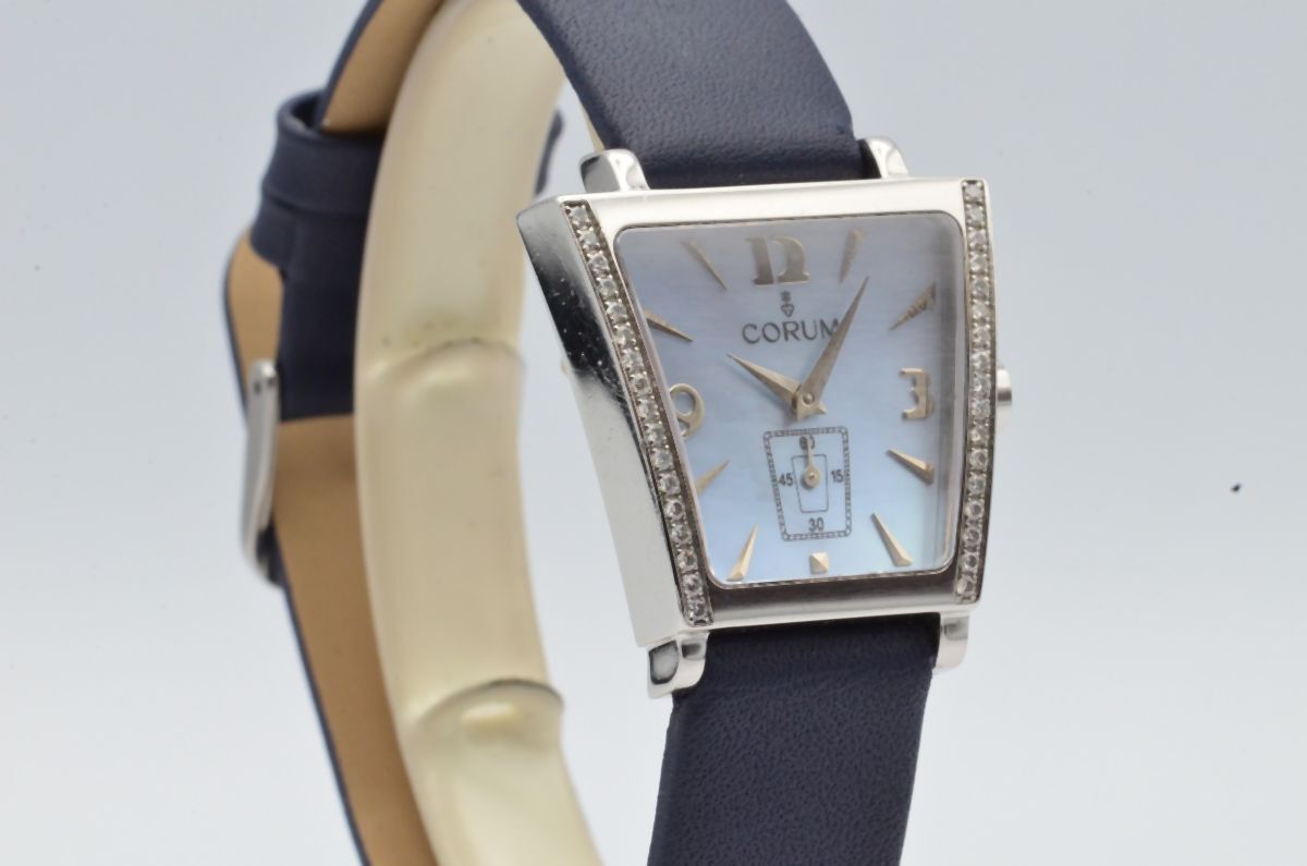 CORUM TRAPEZ DAMEN UHR 24MM STAHL 105.304.20 SCHÖNER ZUSTAND QUARZ BRILLIANTEN