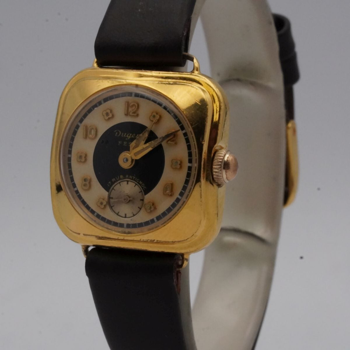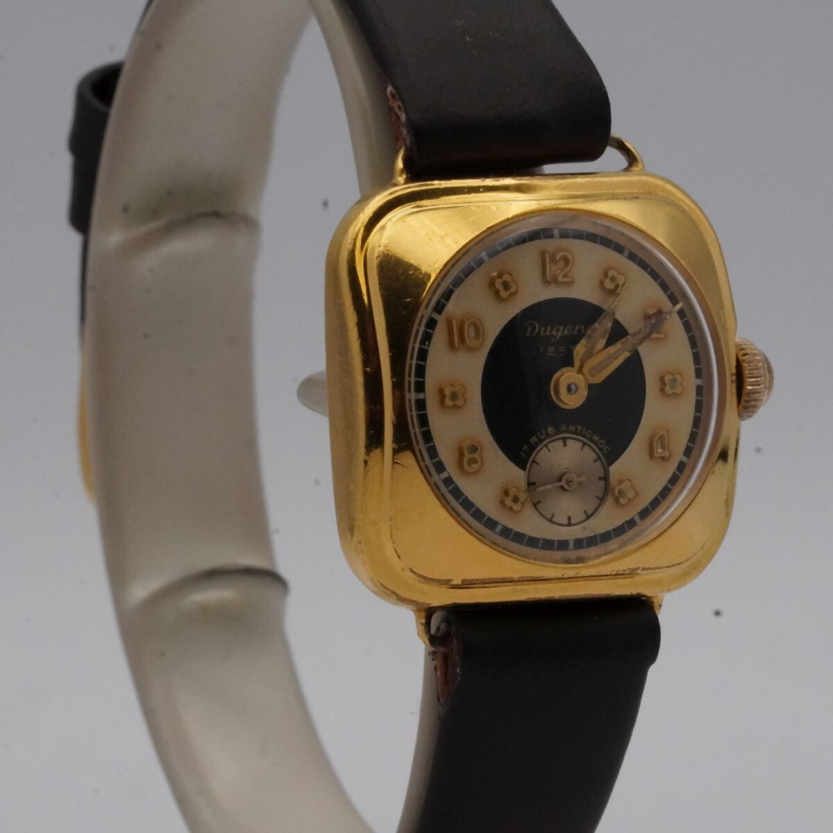 DUGENA DAMEN UHR FEST HANDAUFZUG 20MM VINTAGE EDELSTAHL VERGOLDET ARMBANDUHR