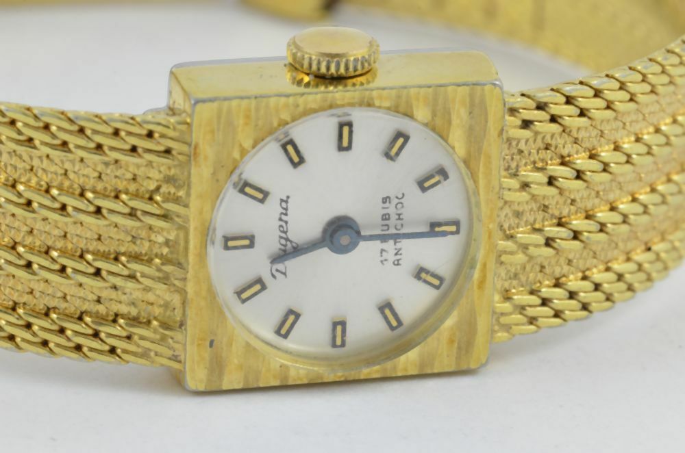 DUGENA HANDAUFZUG DAMEN UHR 15MM VERGOLDET VINTAGE RAR ARMBANDUHR SEHR SCHÖN