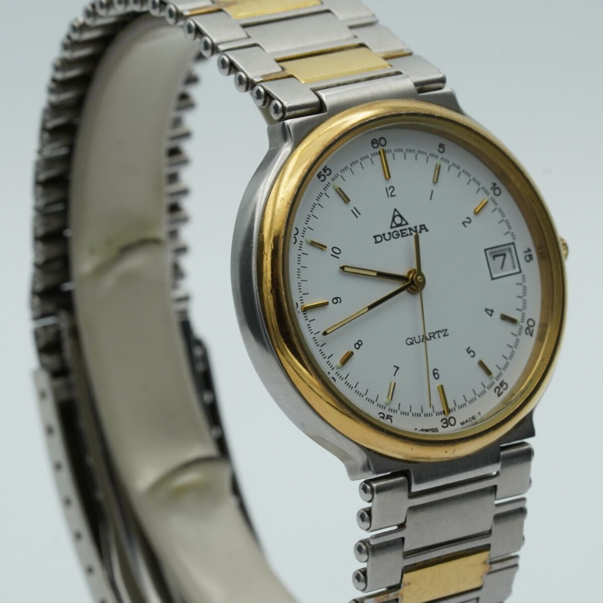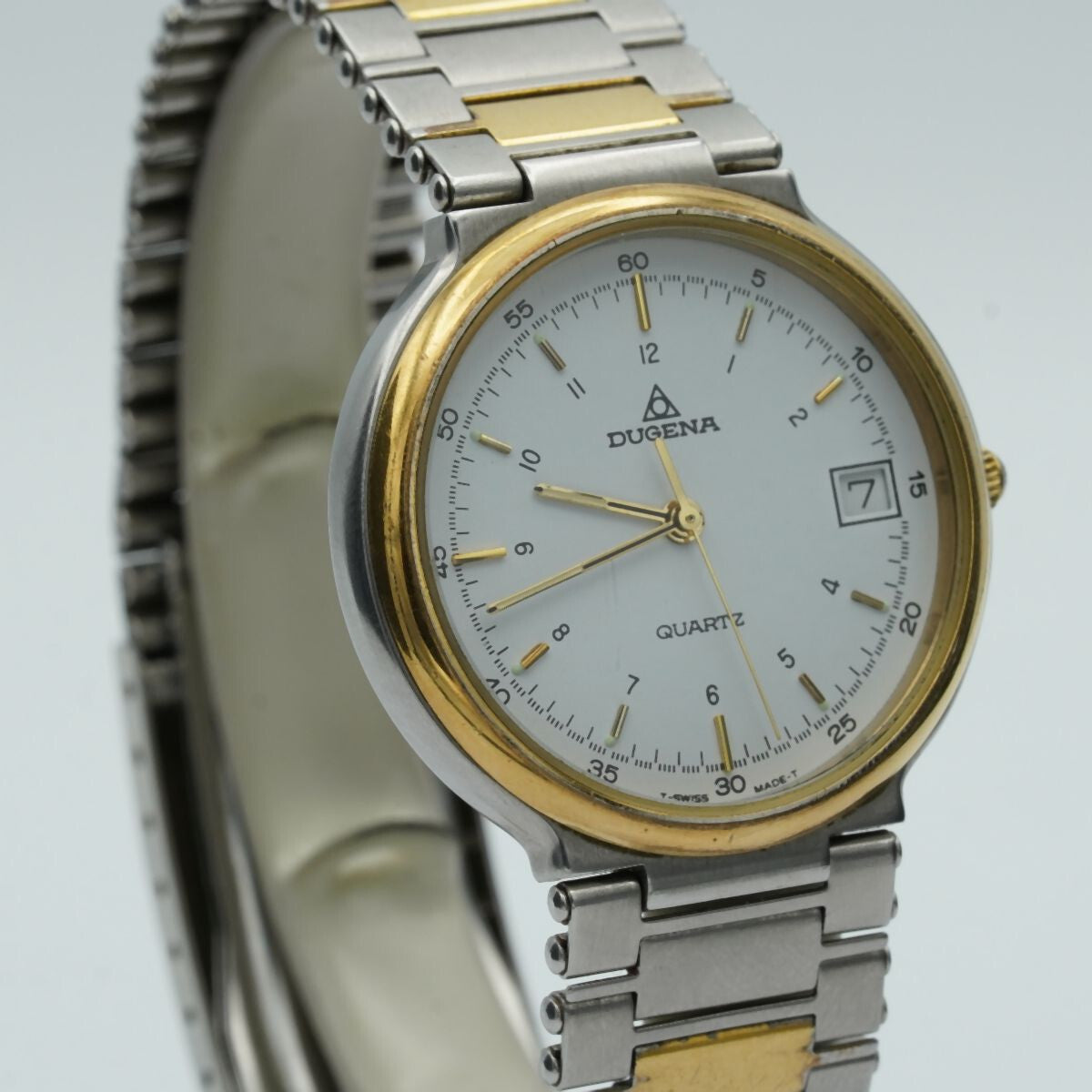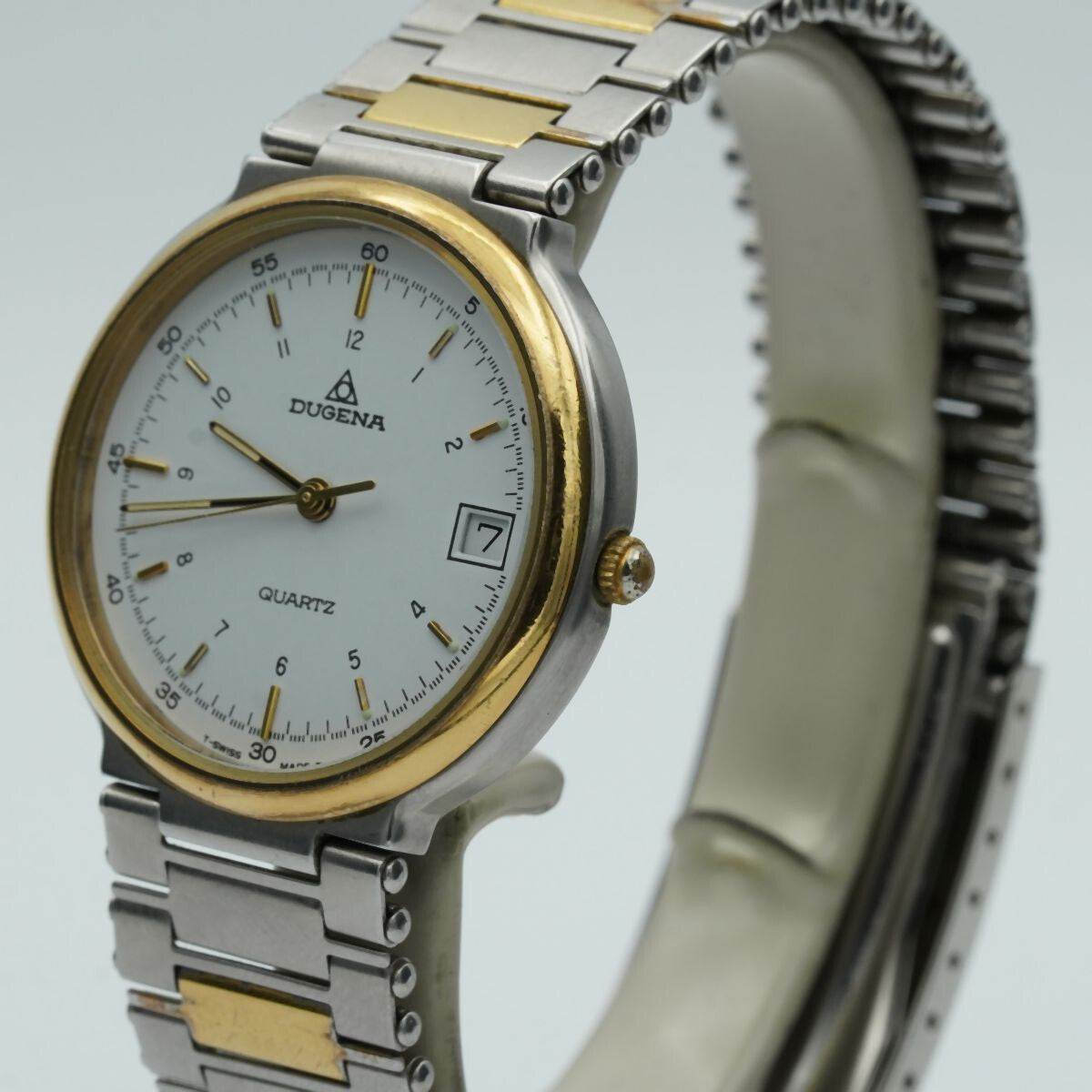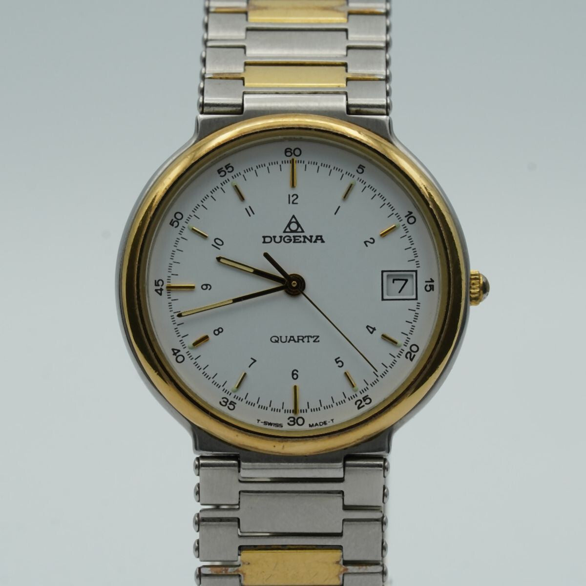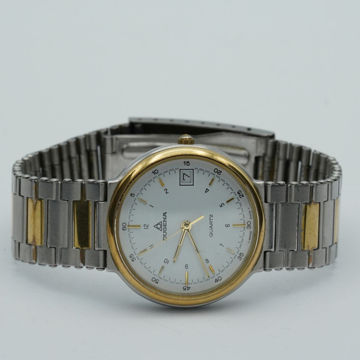 DUGENA HERREN UHR QUARTZ 34MM VINTAG EDELSTAHL VERGOLDET DUGENA