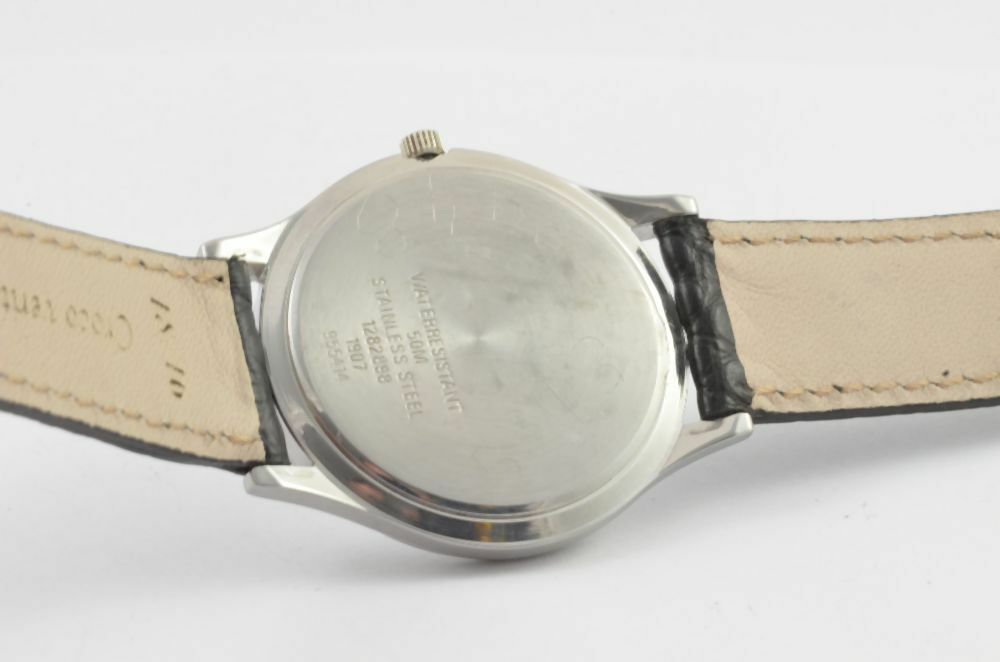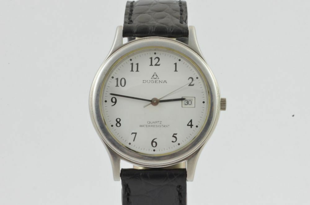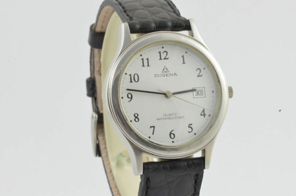DUGENA HERREN UHR STAHL 35MM QUARZ VINTAGE RAR MIT LEDER BAND ARMBANDUHR