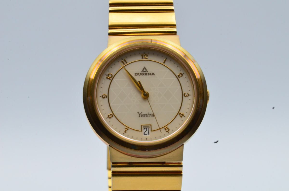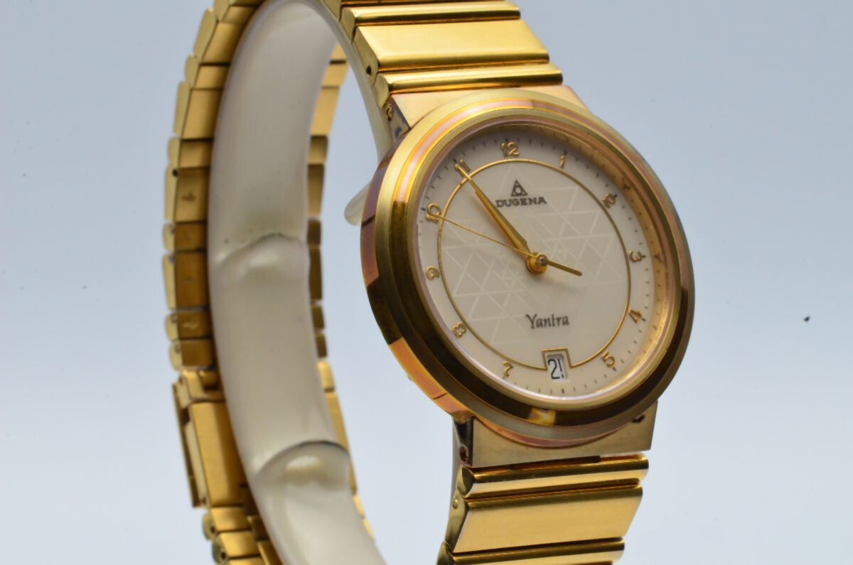 DUGENA HERREN UHR YANTRA AUTOMATIK 34MM VINTAG EDELSTAHL VERGOLDET DUGENA