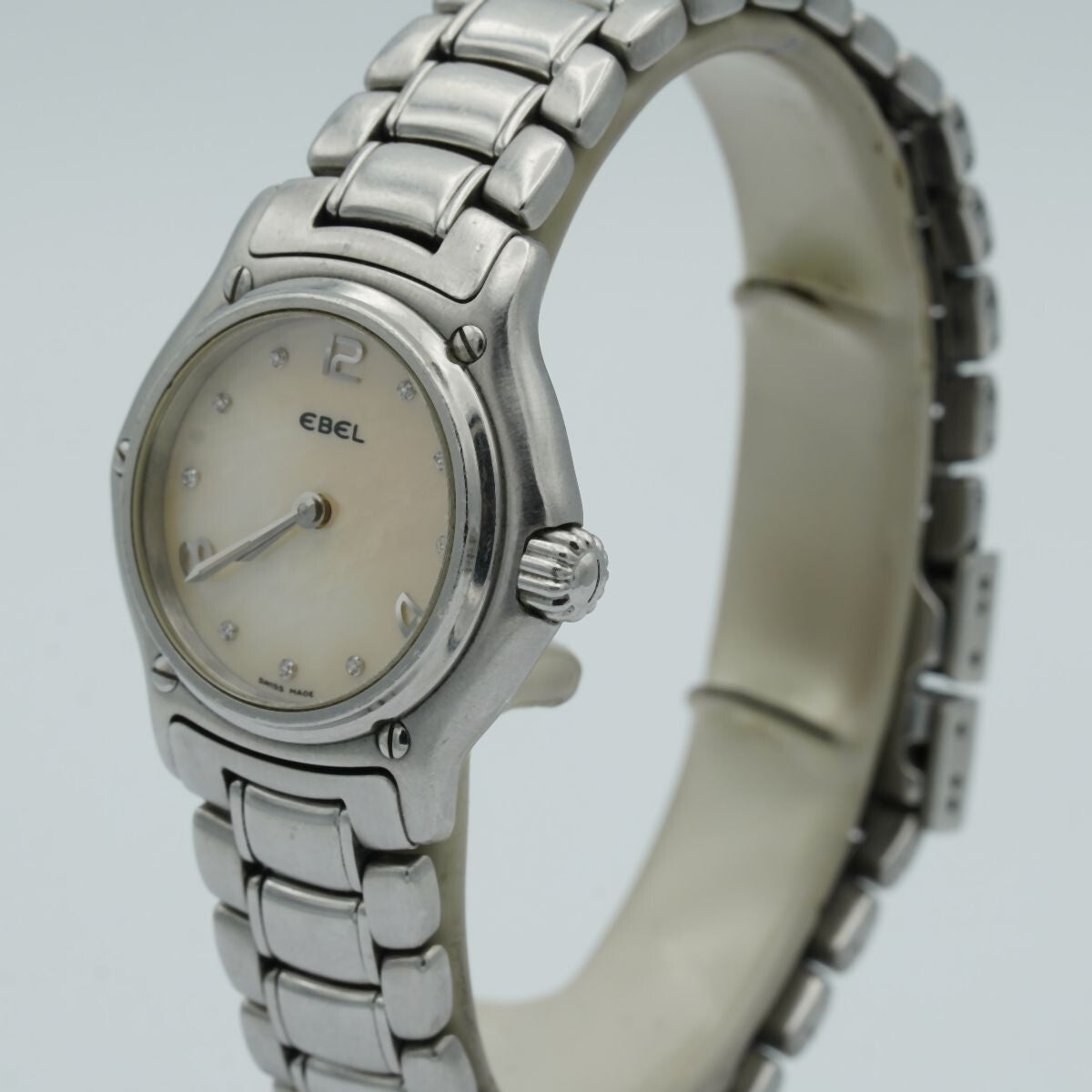 EBEL 1911 DAMEN UHR STAHL 30MM TOP ZUSTAND MIT STAHL ARMBAND 9090211 MOP E115