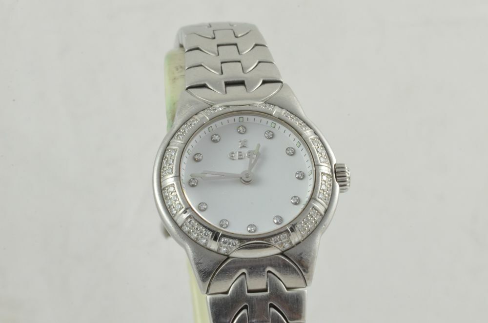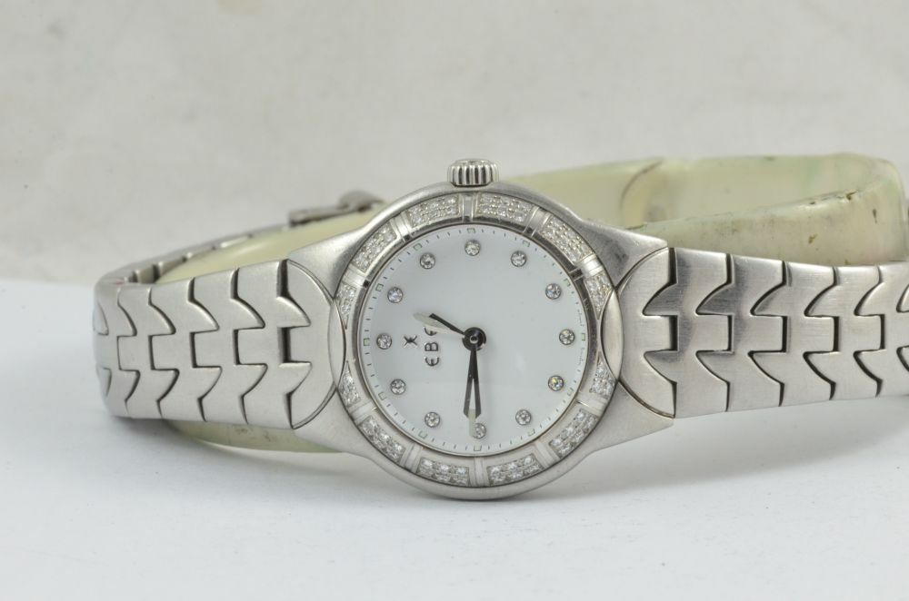 EBEL E-TYPE DAMEN UHR STAHL QUARTZ DAMEN UHR 28MM TOP 9087C21 BRILLIANTEN