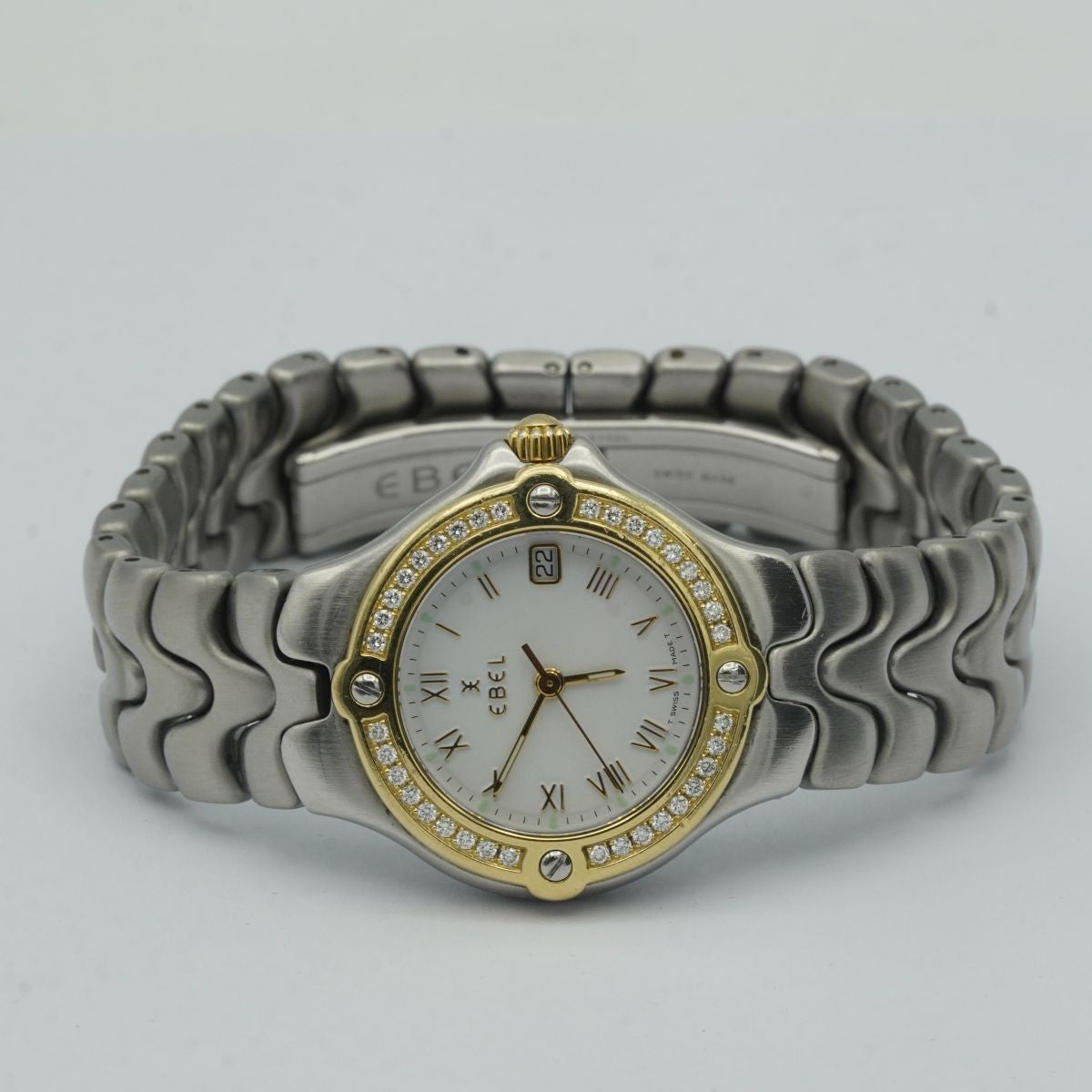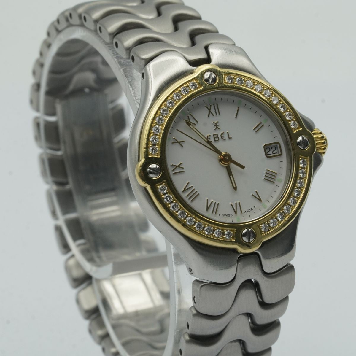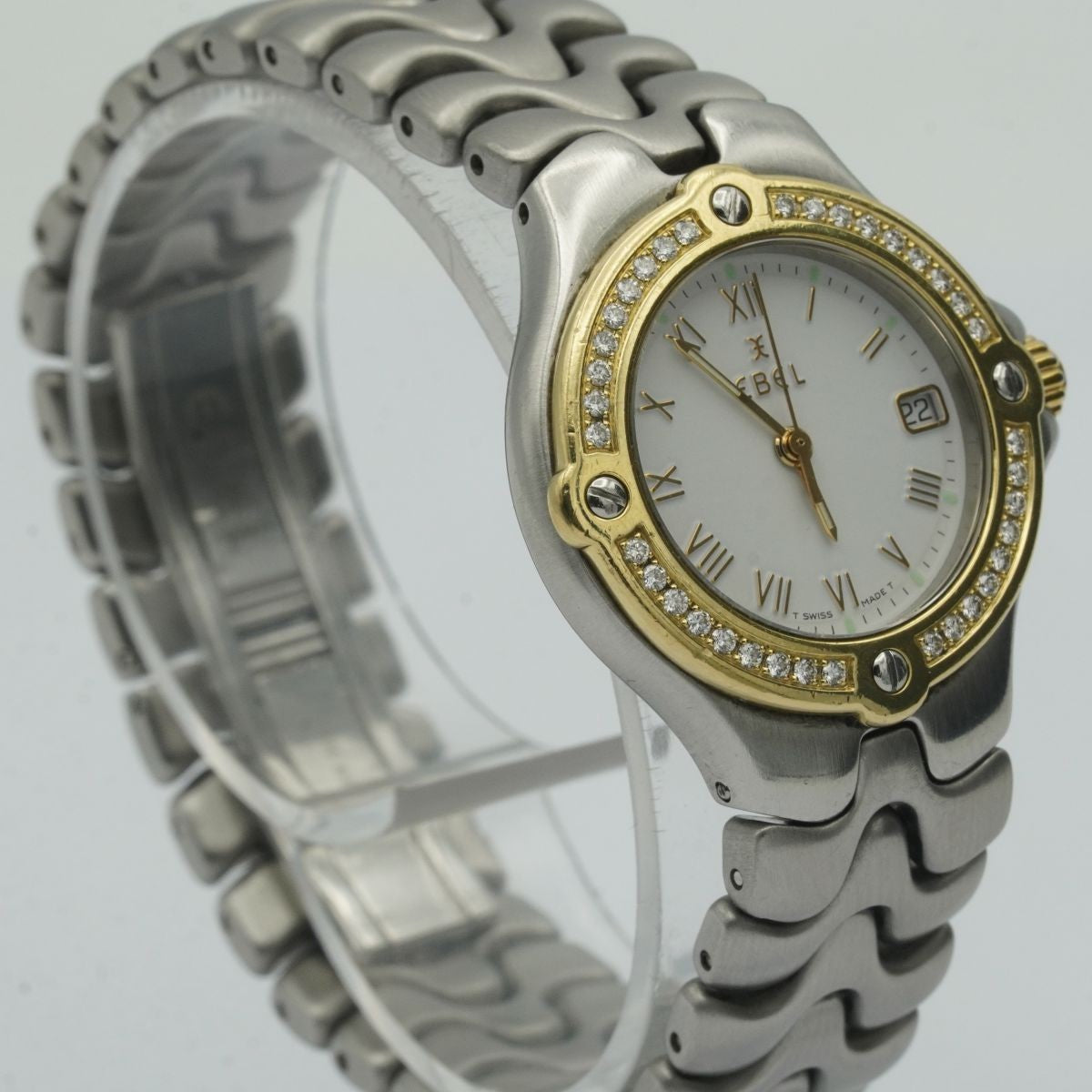 EBEL SPORTWAVE DAMEN UHR QUARTZ STAHL/GOLD 6087621 BRILLIANTEN LÜNETTE