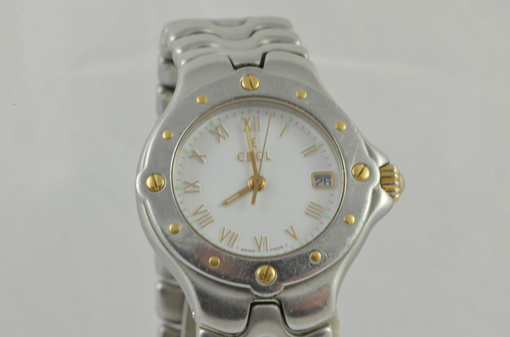 EBEL SPORTWAVE DAMEN UHR QUARZ MIT STAHL LÜNETTE VINTAGE 6087621 ARMBANDUHR 2