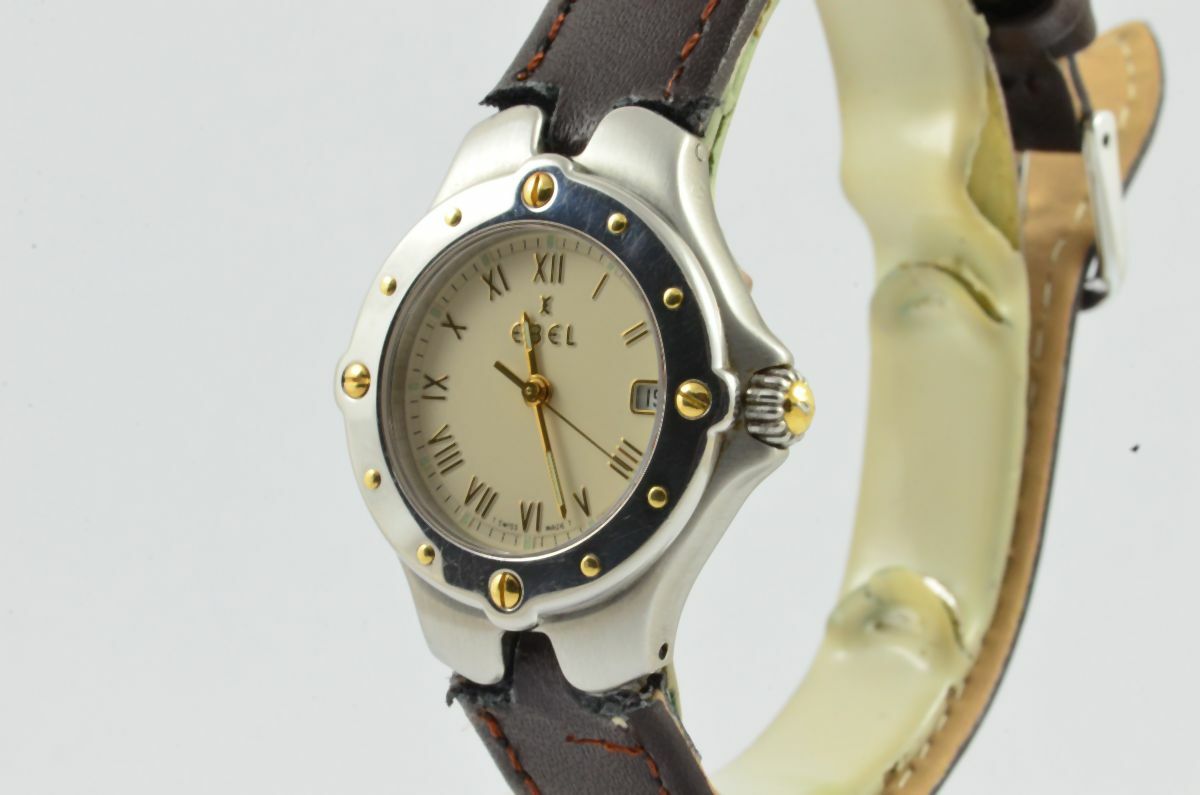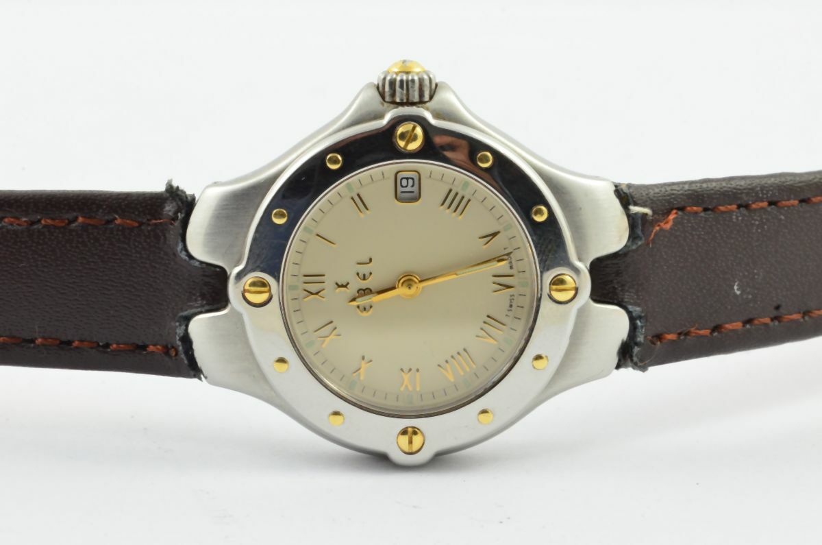 EBEL SPORTWAVE DAMEN UHR STAHL/GOLD 28MM VINTAGE RAR MIT LEDER BAND 2 ARMBANDUHR