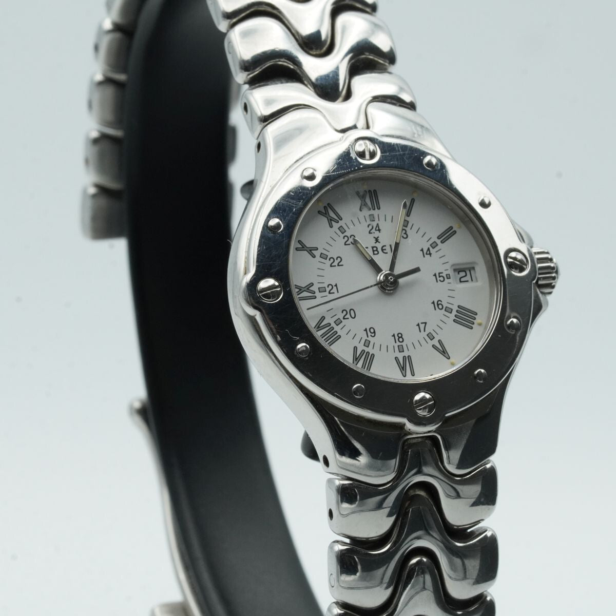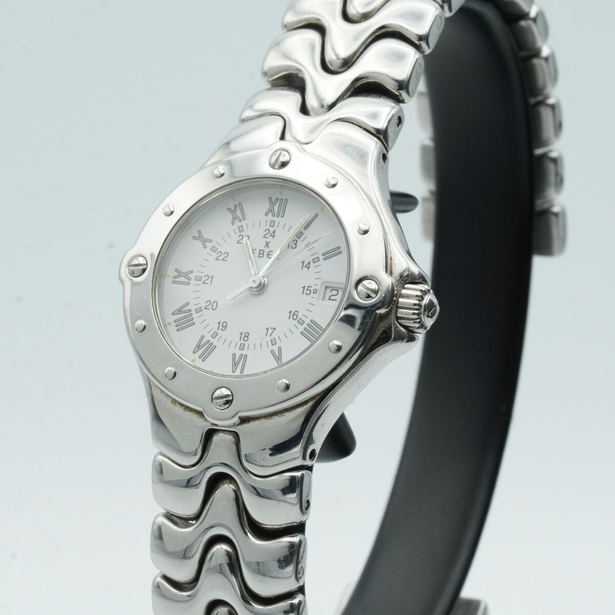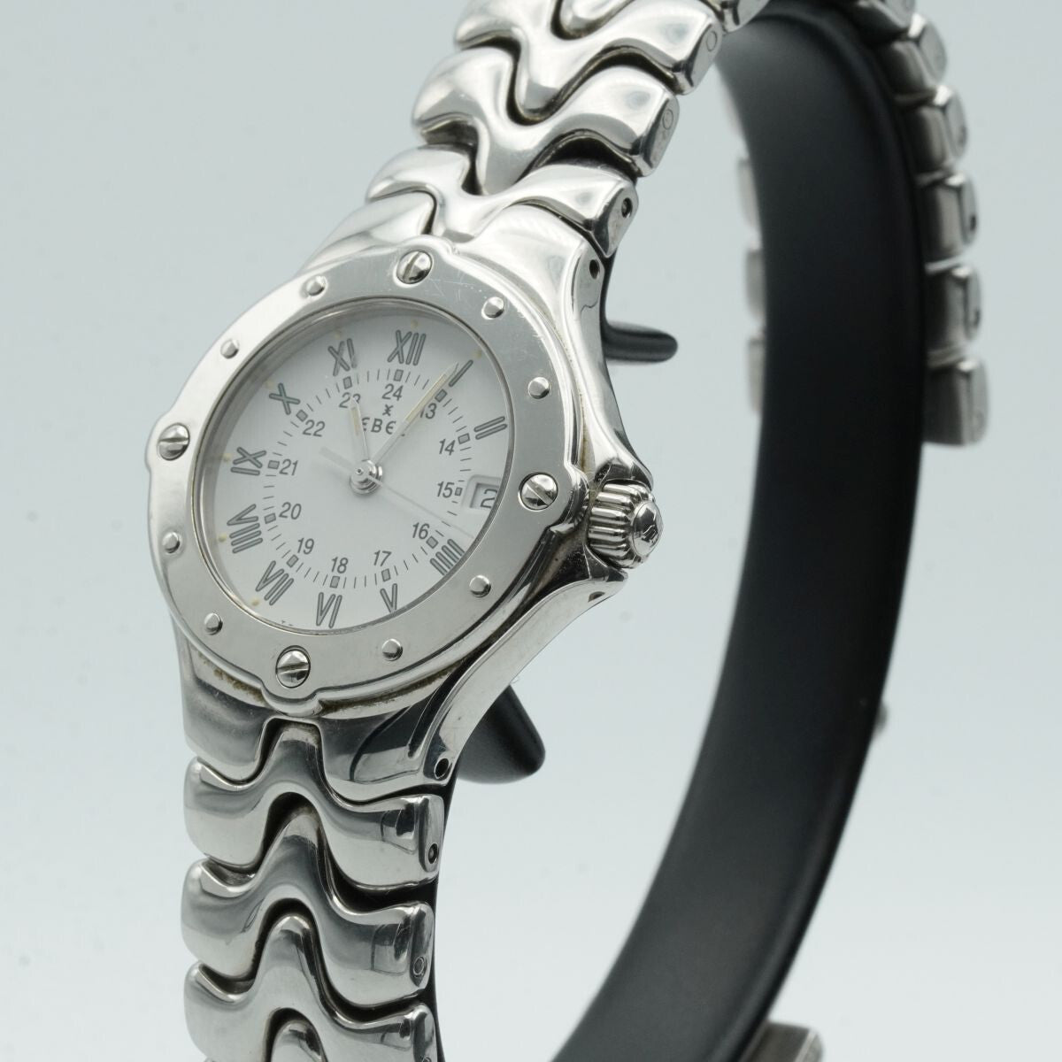 EBEL SPORTWAVE DAMEN UHR STAHL/GOLD 28MM VINTAGE RAR MIT LEDER BAND 6187621 E329